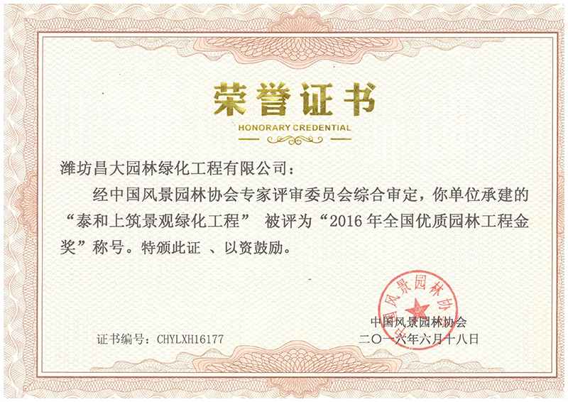 全國優(yōu)質(zhì)園林工程金獎(jiǎng)